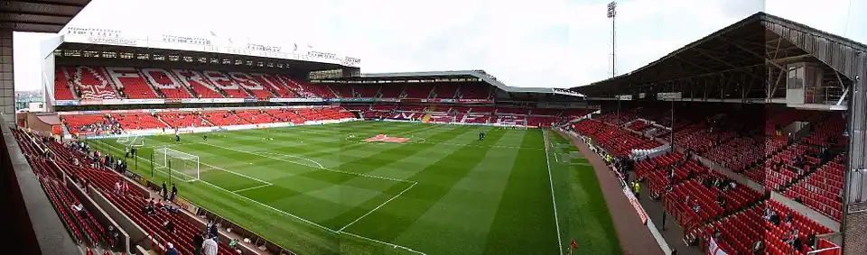 Der City Ground ist ein Fußballstadion in der englischen Stadt West Bridgford, Nottinghamshire, Vereinigtes Königreich. Es wurde 1898 eröffnet und ist die Heimat des Vereins Nottingham Forest. Das Fassungsvermögen beträgt 30.404 Zuschauer.[1]
