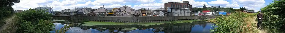 Der City Mill River zweigt vom River Lea ab und verlief an der City Mill vorbei. Stadtpläne aus den Jahren 1895 und 1923 zeigen sie als Chemiefabrik. Die Fabrik lag am Fluss und eine Abzweigung im Westen des heutigen Verlaufes mündete in den Waterworks River flussabwärts der Fabrik. Der Ausfluss der Fabrik ging in ein großes Becken, das auch Teil des Waterworks River war.[1] In den späten 1920er Jahren waren die Bow Back Rivers einschließlich des City Mill River in einem sehr schlechten Zustand. Das Lee Conservancy Board erhielt zusammen mit der West Ham Corporation eine Förderung von der Regierung um die Situation im Rahmen eines Arbeitslosenprojektes zu verbessern. Die Arbeiten wurden durch den River Lee (Flood Relief) Act of 1930 beschlossen und die Umgestaltung begann 1931; sie dauerte vier Jahre.[2]