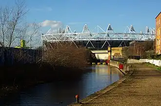 ![]() Der City Mill River mit dem Olympiastadion im Hintergrund | ||