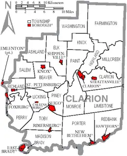 - ↑ U.S. Census Bureau QuickFacts: Clarion County, Pennsylvania. Abgerufen am 28. August 2021 (englisch).