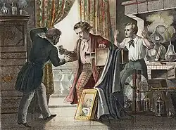 Chromolithografie mit Louis Jacques Mande Daguerre und Claude Félix Abel Niépce.