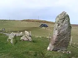 Das Gelände ist grasbewachsen und es gibt keine Reste eines Cairns. Der auffällige stehende Stein des Clyde Tombs etwa drei Meter östlich der Kammer ist etwa 2,1 m hoch. Ausgrabungen ergaben eine Gesamthöhe von 3,5 m. Der Vergleich mit älteren Messungen von 1901 zeigt, dass der Boden seither erheblich angestiegen ist. Der Stein muss als Rest eines Portalsteinpaares angesehen werden, was bedeutet, dass es sich ursprünglich um eine 7,8 m lange durch Querplatten unterteilte Kammer mit drei oder vier Bereichen handelt. Die erhaltene Kammer ist 4,9 m lang und 1,0 bis 1,1 m breit. Bei den von Bryce ausgegrabenen Fächern wurde festgestellt, dass sie "mit Steinen und dunklem Schimmel gefüllt" waren. Menschliche Knochen waren "in großer Unordnung, obwohl sie größtenteils in den Ecken und an den Seiten der Zisten gruppiert waren". Die Artefakte enthalten Becher und andere Scherben, Feuersteinabschläge und Kieselsteine. In der Mitte der Kammer befanden sich auch Tierknochen, darunter die eines Ochsen und eines Schweins oder Schafes. Die Keramik und die Feuersteine befinden sich jetzt im National Museum of Antiquities of Scotland.