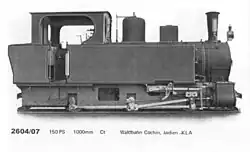 | O&K 2604 | Nov. 1907 | 150 PS | 1000 mm | C n2t | Holz | Conservator of Forest, Cochin State |