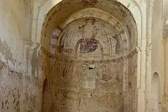 - Die kleine spätromanische Prioratskirche Saint-Pierre-ès-Liens liegt etwa einen Kilometer südlich des heutigen Ortes. Der aus grob behauenen Bruchsteinen, aber mit dem Bemühen um regelmäßige Steinlagen errichtete und durch seitliche Strebepfeiler stabilisierte schmucklose Bau wurde später verputzt. Im Unterschied zum schlichten Westportal der Kirche zeigt die auf der Südseite befindliche – später zugemauerte – Mönchspforte einfache Dekormotive und Schriftzeichen. Im Innern der Kirche wurden Reste von spätgotischen Wandmalereien des 14. Jahrhunderts entdeckt.[2] Der Bau wurde im Jahr 1926 als Monument historique anerkannt.[3]
