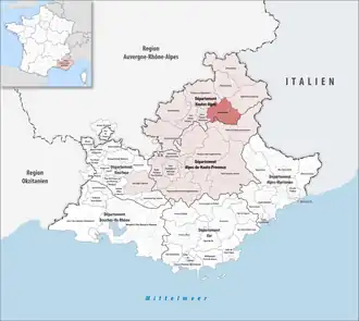 | Département(s) | Alpes-de-Haute-Provence (1 Gemeinden) Hautes-Alpes (16 Gem.) |