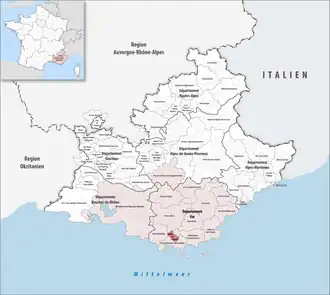 ![]() Lage des Gemeindeverbandes in der Region Provence-Alpes-Côte d’Azur | |