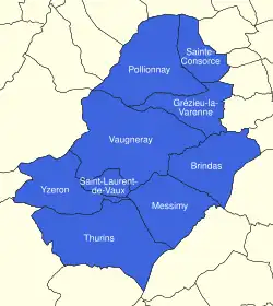 - ↑ CC des Vallons du Lyonnais (CCVL) (SIREN: 246 900 724) in der Base nationale sur l’intercommunalité (BANATIC) des französischen Innenministeriums (französisch).