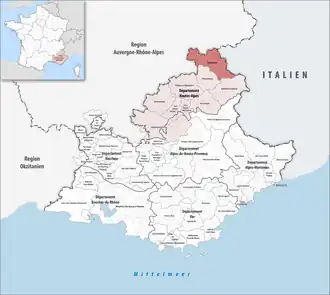 ![]() Lage des Gemeindeverbandes in der Region Provence-Alpes-Côte d’Azur | |