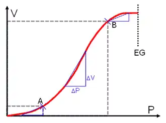Eine Analyse isolierter Werte ist allerdings nur von geringer Aussagekraft, vielmehr interessiert die Veränderung der Compliance abhängig vom Füllungszustand. Häufig werden die Zusammenhänge daher in einem Druck-Volumen-Diagramm dargestellt. Die Compliance entspricht dann der „momentanen Steigung“ in einem der Kurvenpunkte, also der 1. Ableitung der Kurve.