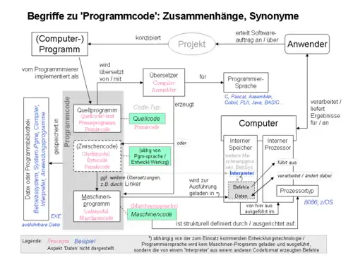 - Quellprogramme (in einer bestimmten Programmiersprache) oder Maschinenprogramme (ausführbar auf bestimmten Plattformen) oder Programme in einem Zwischencode