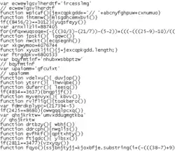 Teil eines polymorph verschlüsselten JavaScript-Virus.