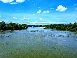 Der Congaree River entsteht in Columbia durch den Zusammenfluss von Saluda River und Broad River in der Nähe der Piedmont Fall Line. Er bildet einen Teil der Grenze zwischen den Countys Richland, Calhoun und Lexington.[6] Die einzigen Städte in der Nähe des Flusses sind Columbia im Osten sowie Cayce und West Columbia im Westen.