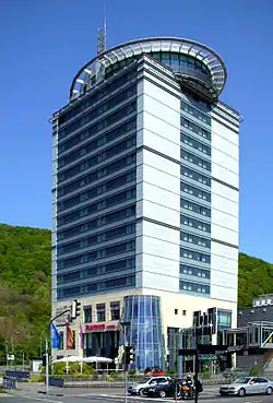 Bis Anfang 2008 gehörte das 17 Stockwerke umfassende Hochhaus zur Hotelkette Mercure Accor Hotels und nannte sich Mercure Hotel Kongress Suhl. Nach Verkäufen und einer Insolvenz firmiert das 4-Sterne-Hotel 2022 als City Hotel am CCS Suhl.