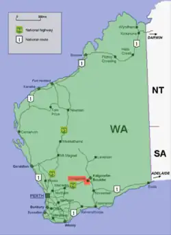 Der Great Eastern Highway und der National Highway 94 führen durch die Stadt als Bayley-Straße, die nach dem ersten Goldentdecker in der Stadt-Region Arthur Bayley benannt ist. Im Osten der Stadt wechselt der Highway 94 in den Coolgardie-Esperance Highway, der weiter nach Norseman führt, der Ausgangsstation zur Durchquerung der Nullarbor Plains.