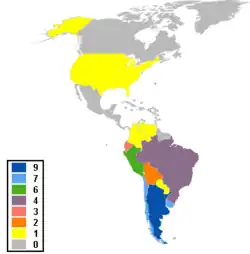 - ↑ a b 1967 wurde zum bisher einzigen Mal eine Qualifikation durchgeführt. Ecuador und Kolumbien schieden dabei aus.
