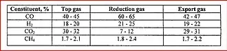 • Der wesentliche Nachteil des Verfahrens sind die enormen Mengen an anfallendem Corexgas, welches verwertet werden muss, um den Prozess wirtschaftlich betreiben zu können. Da das Gas als Brennstoff im laufenden Prozess schlecht in ein gewachsenes Hüttenwerk zu integrieren ist, wird es vorwiegend an Energieversorger bzw. an die Schwerindustrie als Heiz- und Feuerungsgas weiterverkauft.