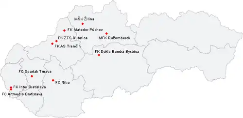 | ŠK Matador Púchov | Púchov | Mestský štadión Púchov | 6.000 |