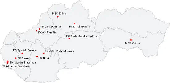 | FC Zlaté Moravce | Zlaté Moravce | Štadión Zlaté Moravce | 5.000 |