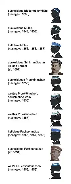 Die unterschiedlichen Kopfbedeckungen der Saxonia zu Halle