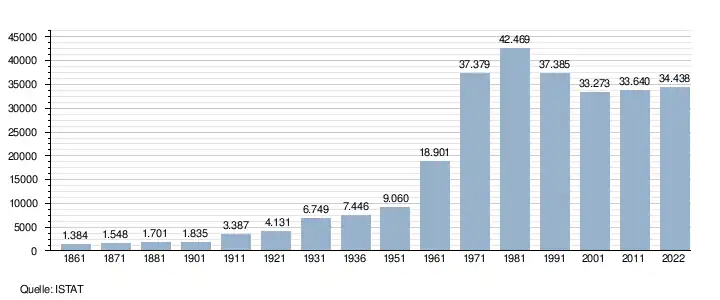 - ↑ Bilancio demografico e popolazione residente per sesso al 31 dicembre 2024. ISTAT. (Bevölkerungsstatistiken des Istituto Nazionale di Statistica, Stand 31. Dezember 2024).