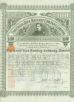 - ↑ Enrique Villavicencio: Republica de Costa-Rica. Historia, Geografía, Reino mineral, Reino vejetal, Reino animal, Población, Instrucción pública, Ejército, Industrias, Comercio, Vias de comunicación, Rentas, Gastos, Deuda. Hrsg.: Imprenta nacional. 1886, S. 62 (spanisch, google.co.ve).