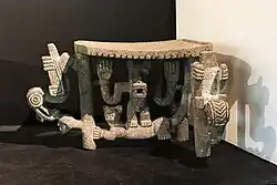 Zwischen 500 v. Chr. und 300 n. Chr. vollzog sich ein Wandel von der Stammesorganisation hin zu einer Kazikengesellschaft mit dem Bau von Felssockeln, Hügeln, Öfen, Vorratsgruben und Statuen.[47] In einigen Gebieten wurde Mais als Hauptanbauprodukt angebaut[47], während in anderen Gebieten neben der Nutzung der Küstenressourcen (Fischfang) und der Jagd ein gemischtes System existierte. In dieser Zeit wurden Artefakte aus Jade und anderen grünen Steinen[48], zeremonielle Metaten, Steinköpfe für Stöcke und spezielle Keramik sowie Metallgegenstände (Kupfer und Gold) hergestellt und verwendet. Dreibeinige Metaten mit hängenden Platten sind eine außergewöhnliche und einzigartige Manifestation der präkolumbischen Kunst Costa Ricas, die mit tierischen und menschlichen Elementen verziert sind.[49] Zwischen 300 und 800 n. Chr. entstanden die ersten komplexen Häuptlingstümer mit großen Dörfern und Infrastrukturbauten (Fundamente, Dammwege und Grabhügel). Es gibt eine Siedlungshierarchie mit Haupt- und Nebendörfern, die Bildung von Erblinien und eine Spezialisierung der Arbeit, mit dem Auftreten eines Kaziken im Hauptdorf und Nebendaziken in den Nebendörfern.