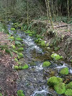 • North Fork Falls – 20 ft (6,1 m), permanenter Fall am Weg durch das Coal Creek Natural Area in Bellevue, über die Straße hinweg vom Red Town Trailhead zu erreichen