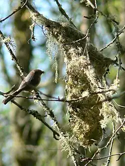 Nest von Buschmeisen (Psaltriparus minimus, englisch bushtit) im Park
