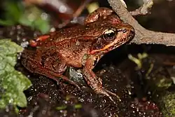 Nördlicher Rotbein-Frosch (Rana aurora; englisch Northern Red-legged Frog) am Klondike Swamp Trail