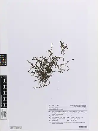 - ↑ In: H. E. Connor, E. Edgar: Name changes in the indigenous New Zealand flora, 1960–1986 and Nomina Nova IV, 1983–1986. In: New Zealand Journal of Botany. Band 25, Nummer 1, 1987, S. 128 (doi:10.1080/0028825X.1987.10409961).