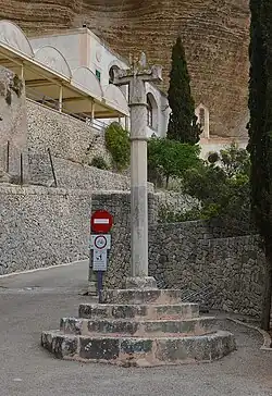 Das Kreuz befindet sich unmittelbar am Eingang zum Gelände des Heiligtums.