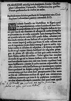 - Quaestio utrum praeferendus sit doctor an miles. Angelus Britannicus, Brescia 1497. (Digitalisat)