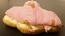 Ein Crompouce ist eine Mischung zwischen einem Croissant und einem Tompouce und vornehmlich in den Niederlanden bekannt.[1] Diese Backkreation wurde 2023 auf niederländischen Social-Media-Plattformen zu einem Hype und kurz darauf von der Erfinderin als Marke eingetragen.[2] An Stelle von Blätterteig wird der für Croissants übliche Plunderteig mit einem geringeren Zucker- und höheren Eianteil verwendet. Das Croissant wird aufgeschnitten und mit Vanillecreme gefüllt; darüber wird eine Lage rosa eingefärbte Glasur gestrichen.[3]