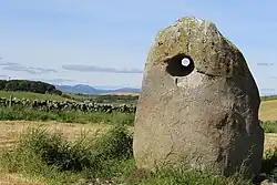 Der Menhir (englisch Standing stone) ist etwa 1,5 Meter hoch und hat 0,35 m von oben ein doppeltkonisches Loch, was ihn zum Lochstein macht.