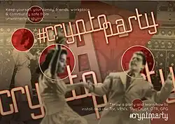 Eine CryptoParty (auch Kryptoparty) bezeichnet ein Treffen von Menschen mit dem Ziel, sich gegenseitig grundlegende Verschlüsselungs- und Verschleierungstechniken (zum Beispiel Tor, VPN, OpenPGP, Festplattenverschlüsselung und OTR) beizubringen. CryptoPartys sind öffentlich und unkommerziell, mit dem Fokus auf Open-Source-Software.[1]