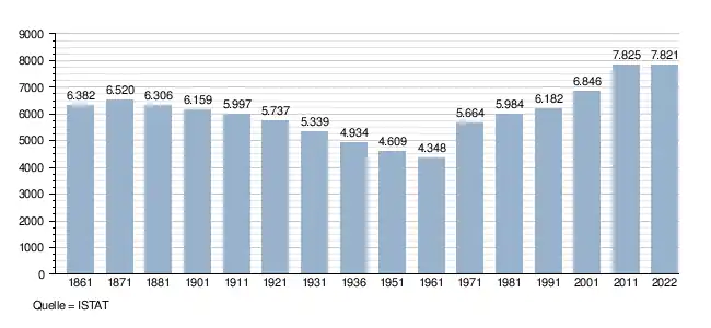 - ↑ Bilancio demografico e popolazione residente per sesso al 31 dicembre 2024. ISTAT. (Bevölkerungsstatistiken des Istituto Nazionale di Statistica, Stand 31. Dezember 2024).