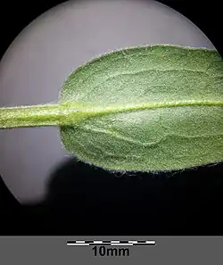 Die Laubblätter sind in grundständigen Rosetten und dicht wechselständig am Stängel verteilt angeordnet. Die Stängelblätter sind bis zu 20 Zentimeter lang,[2] stängelumfassend, beiderseits angedrückt behaart, grau-grün und derb,[1] Die untersten Stängelblätter besitzen einen geflügelten Blattstiel, die oberen sind sitzend, bei einer Länge von 5 bis 15 Zentimetern sowie einer Breite von 7,5 bis 30 Millimetern[2] lanzettlich und filzig behaart.[4]