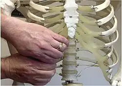 Einfache Röntgen-, CT-, MRT- und Standard-Ultraschall-Aufnahmen sind alle nicht in der Lage, den vom Cyriax-Syndrom betroffenen Knorpel zu visualisieren; sie werden jedoch oft verwendet, um andere Erkrankungen auszuschließen.[3] Dynamischer Ultraschall wird gelegentlich verwendet, um die dynamische Bandlaxität oder Verschiebung des Knorpels zu bewerten;[10] Es wurde jedoch gesagt, dass er der einer körperlichen Untersuchung durch einen erfahrenen Arzt nicht viel überlegen ist, da eine Diagnose von der Expertise und dem Wissen der Fachkraft über den Zustand abhängt.[9] Ein positives Ergebnis eines dynamischen Ultraschalls für das Cyriax-Syndrom erfordert eine beobachtete Subluxation des Knorpels, die mit dem Valsalva, Bauchpressen oder anderen Manövern hervorrufen kann.[11][12] Nervenblockierende Injektionen wurden auch als diagnostische Methode verwendet, indem das Fehlen von Schmerzen nach einer Injektion in die Interkostalnerven der betroffenen Rippen festgestellt wurde.[13][10]