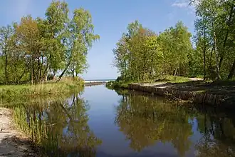 Mündung bei Ostrowo (Ostrau) in die OstseeKoordinaten: 54° 49′ 58″ N, 18° 14′ 9″ O