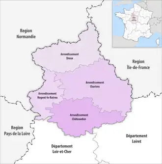 Das Département Eure-et-Loir gliedert sich in 4 Arrondissements, 15 Kantone und 365 Gemeinden: