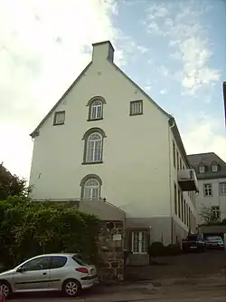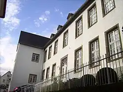 Der Bau befindet sich an der Schlossstraße in der Nähe des ehemaligen Stadttors des Glockenturmes direkt neben der ehemaligen Jesuitenniederlassung. Beide Gebäude liegen nicht direkt an der Straße, sondern auf einem von einer Bruchsteinmauer gestütztem Plateau deutlich über dem Straßenniveau.