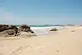 Der ähnlich einer Bucht zum Meer hin vorgelagerte Sandstrand, als weist eine Länge von mehr als 5000 Metern auf und ist stellenweise 40 bis 60 Meter breit, dies ist aber unterschiedlich je nach Gezeitenstand von Ebbe und Flut.[3][4]