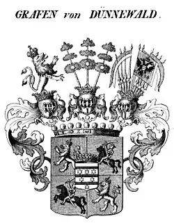- ↑ Österreichisches Staatsarchiv: AT-OeStA/AVA Adel HAA AR 200.1 Dünnewaldt, Heinrich Johann, Grafenstand, 1675.11.18 (Akt (Sammelakt, Grundzl., Konvolut, Dossier, File)).