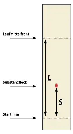 Um verschiedene DC vergleichen zu können, werden die so genannten -Werte (Retentionsfaktor, Rückhaltefaktor, ratio of fronts) berechnet. Es handelt sich dabei um das Verhältnis von Laufstrecke der Substanz () zur Laufstrecke des Laufmittels (): . Die -Werte sind bei gleichem Plattenmaterial und gleicher Laufmittelzusammensetzung Stoffkonstanten. Auch Anwendung findet der -Wert, wobei die Laufstrecke des Substanzflecks im Verhältnis zu der Laufstrecke eines Standards gesetzt wird. Der Standard ist dabei meist ein Reinstoff. Anhand des -Werts ist also eine qualitative Auswertung möglich.