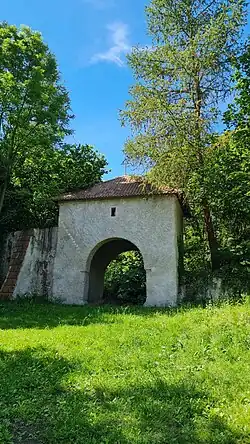 - In der Friedhofsmauer sind noch zahlreiche barocke Grabsteine erhalten