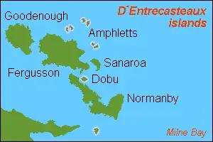 Die D’Entrecasteaux-Inseln liegen in der Salomonensee, östlich von Neuguinea, und gehören zur Provinz Milne Bay des Pazifik-Staates Papua-Neuguinea. Sie wurden nach ihrem Entdecker d’Entrecasteaux benannt.
