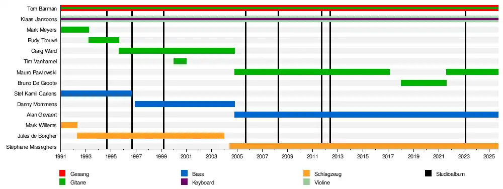 Frontmann der Band ist Tom Barman mit Gesang und Gitarre. Klaas Janzoons spielt Keyboard, Mandoline und Violine, Stéphane Misseghers Schlagzeug, Alan Gevaert Bass und Mauro Pawlowski ebenfalls Gitarre. Misseghers war bis 2004 Mitglied der Band Soulwax; Pawlowski gehörte, wie Craig Ward, vorübergehend zu Kiss My Jazz.