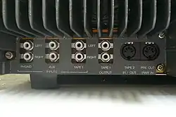 Der Audio-Receiver (Verstärker und Tuner in einem Gerät) Revox B780 von 1980 hat sowohl Cinch-Buchsen als auch 5-polige DIN-Buchsen zum Anschluss von externen Signalquellen; der Anschluss einer externen Endstufe am Vorverstärker-Ausgang (Pre out) war nur per DIN-Buchse möglich