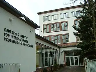 Seit 1952 residierte das Institut im Gebäude der ehemaligen Kaufunger-Schule in Frankfurt-Bockenheim, Schloßstraße 29. 1964 wurde es in Deutsches Institut für Internationale Pädagogische Forschung (DIPF) umbenannt, in das Königsteiner Staatsabkommen aufgenommen und fortan von allen Bundesländern gemeinsam finanziert. Seit 1977 erfolgt die Finanzierung zu gleichen Teilen durch Bund und Länder. 1992 übernahm das DIPF Teile der Akademie der Pädagogischen Wissenschaften der DDR, die in der DIPF-Abteilung Bibliothek für Bildungsgeschichtliche Forschung (BBF) aufgingen. Die BBF ist eine Forschungsbibliothek mit Sondersammelgebietsfunktion zur Bildungsgeschichte mit Sitz in Berlin.[3]