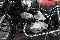 | Motor | fahrtwindgekühlter Zweizylinder-Zweitakt-Reihenmotor mit 180° Kurbelversatz, Kickstarter | ||||